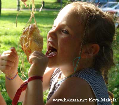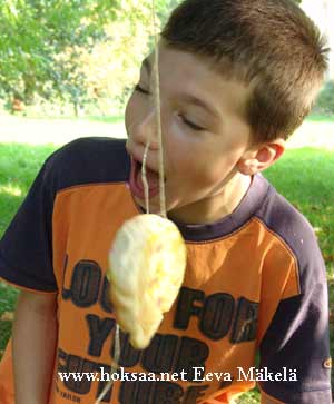 Kaikki iskivät kiinni lakuun. Narulta oli suhteellisen helppo napsia niitä yksi kerrallaan, kunhan ensin sai lakupalasta otteen hampaillaan. Narulla heiluvan pullan syöminen sen sijaan tuotti vaikeuksia, sitä kun ei voinut yhdellä haukkauksella niellä!