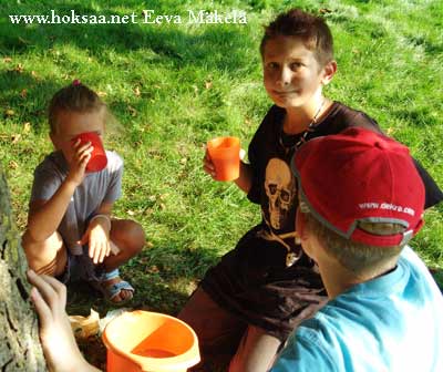 Voittajien teki mieli appelsiinimehua ja vettä. He saivat juomat, mutta ne piti säästää finaaliin. Hitaammin ahminut joukkue otti ananasmurskatölkin ja limsapullon.