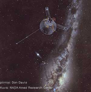 Pioneer 10 -niminen luotain laukaistiin maaliskuussa 1972. Luotain on kulkenut Pluton ohi vuonna 1983 ja se etenee nyt tähtienvälisessä avaruudessa. Tämän luotaimen ulkopuolella on kullattuun laattaan piirretty kuva, joka esittää Maan sijaintia Aurinkokunnassa. Myös Auringon sijainti esitetään suhteessa sellaisiin suuriin tähtiin, jotka mikä tahansa sivilisaatio olisi huomannut. Kuvassa on esitetty myös mies ja nainen sekä vetyatomin rakenne.